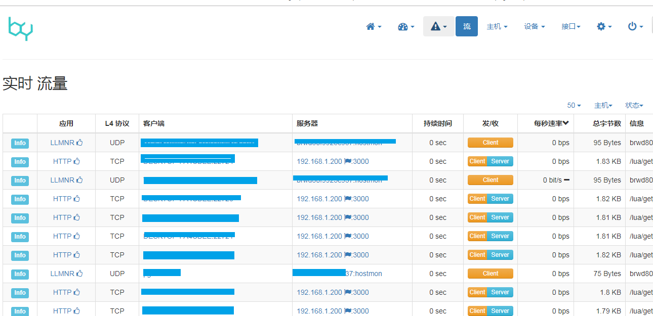 根據許多(duō)标準對網絡流量進行(xíng)排序,包括地址,端口,L7協議,吞吐量等。